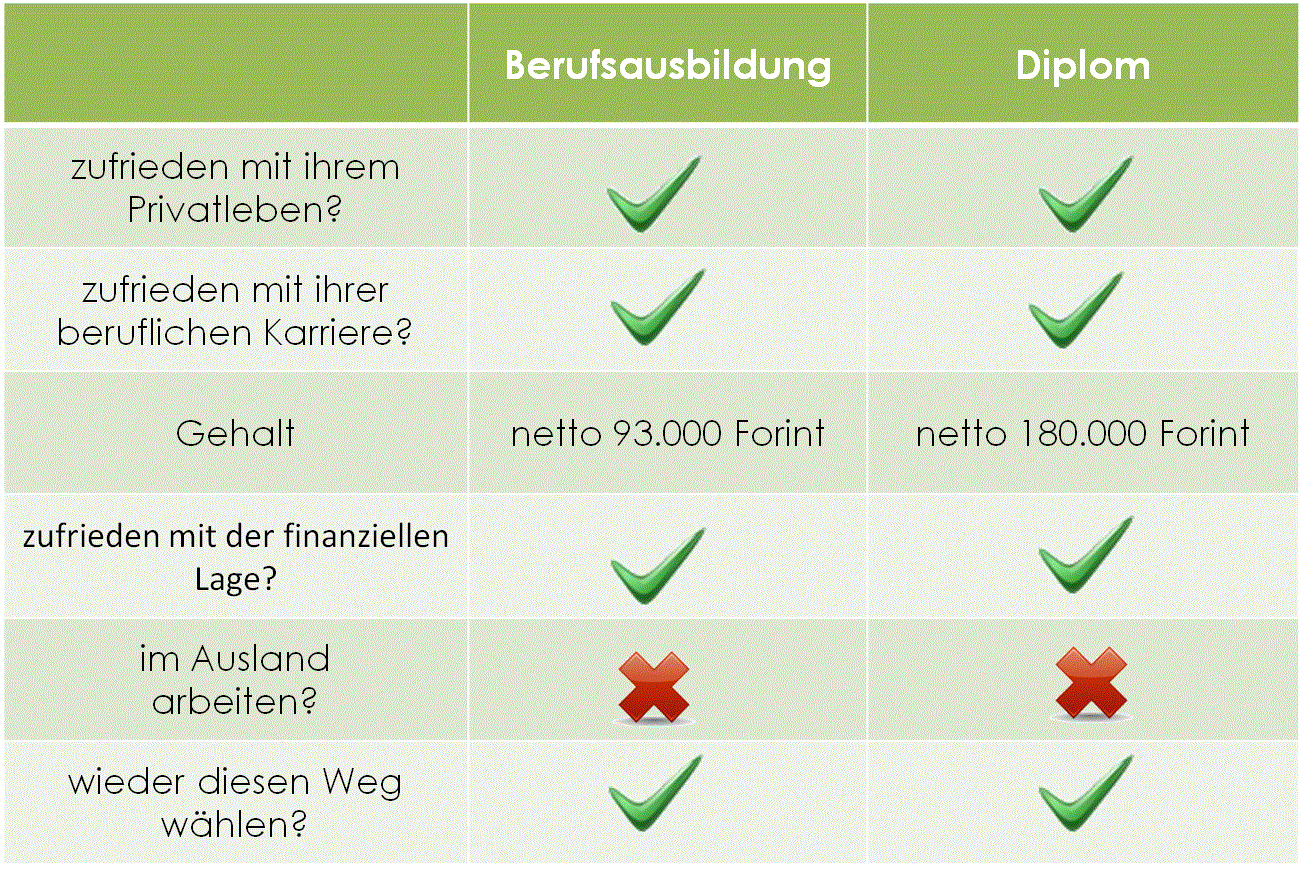 Interview mit zwei Frauen, die in der Baross Gábor Zweisprachigen Fachmittelschule für Wirtschaft gelernt haben. Die eine hat an einer Universität studiert und die andere eine Berufsausbildung gemacht.